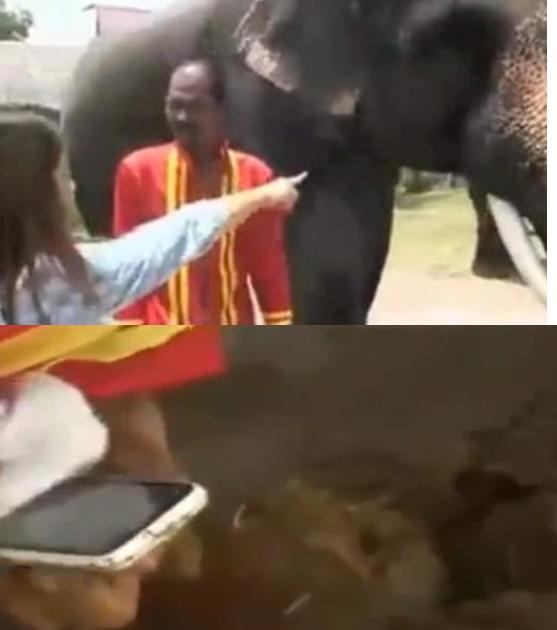 공개된 영상에는 휴대폰으로 코끼리 영상을 찍던 여성에게 한 코끼리가 다가와 들고 있던 휴대폰을 잡아채 삼켜버린다.