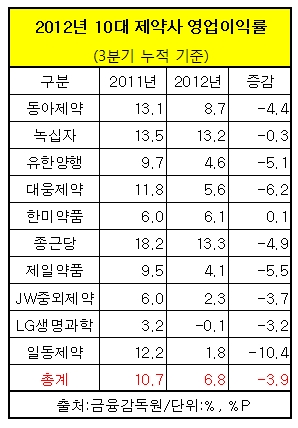 이같은 현상에 대해 제약업계 관계자는 “2012년이 어려운 해였지만 상위 제약사들은 인력 감축이나 연봉 삭감 등의 소극적인 해결책보다는 오히려 적극적인 마케팅과 신약 개발 등으로 부진에서 벗어나려는 시도를 했다”고 풀이했다.