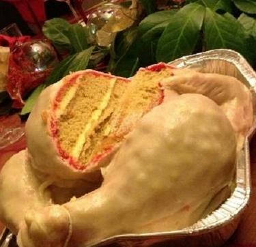 공개된 사진 속 생통닭 케이크는 영국 유명 요리사가 만든 것으로 크리스마스를 맞아 칠면조를 본 딴 것이다.