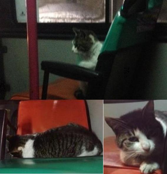 사진에는 연일 계속되는 강추위를 피해 버스에 올라탄 길고양이 한 마리의 모습이 담겨있다.