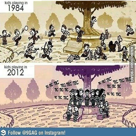 최근 한 온라인 커뮤니티 게시판에는 '1984 vs 2012 아이들'이란 제목으로 두 시대의 아이들이 노는 모습을 비교한 그림이 게재됐다.