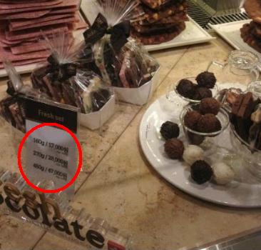 눈에 띄는 것은 초콜릿 가격표에 100g에 1만원이라고 적혀있는데다 여러 초콜릿을 묶어 놓은 세트가 160g에 1만7천원, 270g에는 2만8천원이며 450g에는 4만7천원으로 높은 가격이 책정되어있어 보는 이들의 놀라움을 자아낸다.