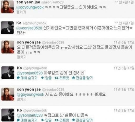 최근 온라인 커뮤니티에는 고영욱과 손연재가 지난 2011년 4월부터 8월 사이 나눈 트위터 대화가 공개됐따.