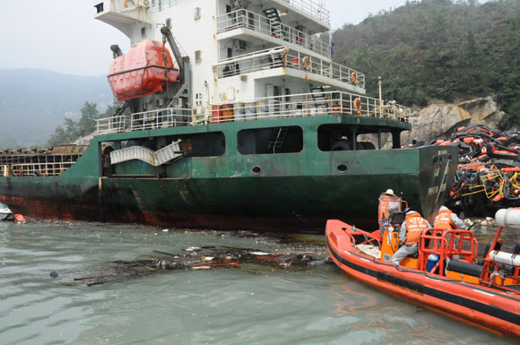 유출량 증가 주요원인으로는 지난 8월 완도군 약산면 가사리해안가에서 제15호 태풍 '볼라벤'의 내습으로 3천톤급 화물선이 암초에 좌초돼 B/C유 35.4톤이 유출된 해양오염사고와 12월 완도군 보길도 앞 해상에서 80톤급 예인선이 정박중 조석간만차로 침수돼 B/A유 등 3톤이 유출된 사고가 꼽혔다.