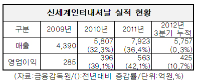 2010년 매출과 영업이익이 각각 32.3%, 39.1% 늘고 2011년에는 매출은 36.4%, 영업이익은 42.1%나 증가했던 것에 비하면 매우 부진한 기록이다.