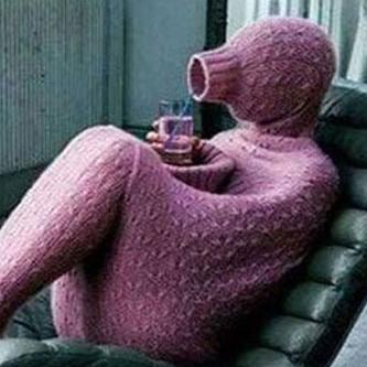 혼자 있고 싶을 때 입는 옷 사진에는 분홍색 올인원 스웨터를 입은 사람의 모습이 담겼다.
