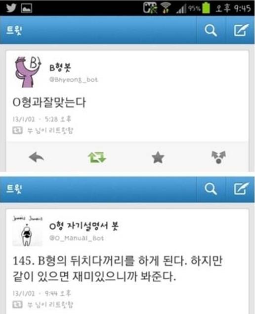 O형과 B형의 관계 게시물이 화제다.