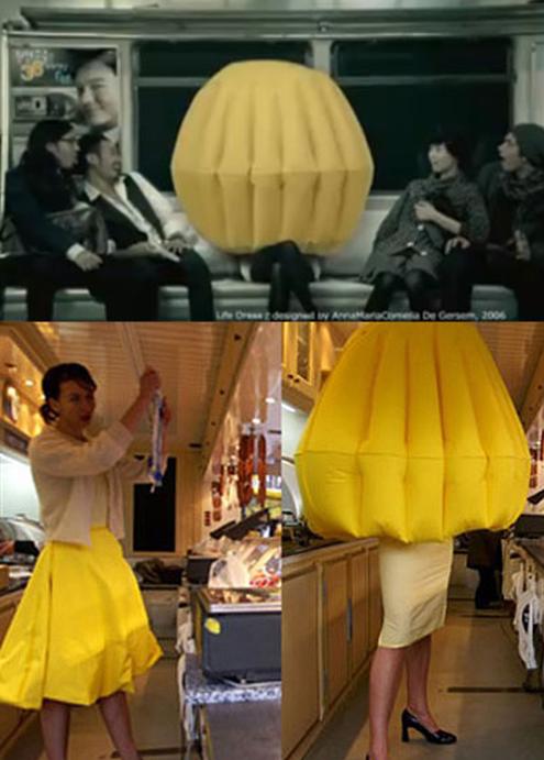 혼자있고 싶을 때 입는 옷 2탄은 벨기에 출신 디자이너가 선보인 ‘라이프 드레스’로 치마에 공기를 주입해 작은 방을 만드는 것.