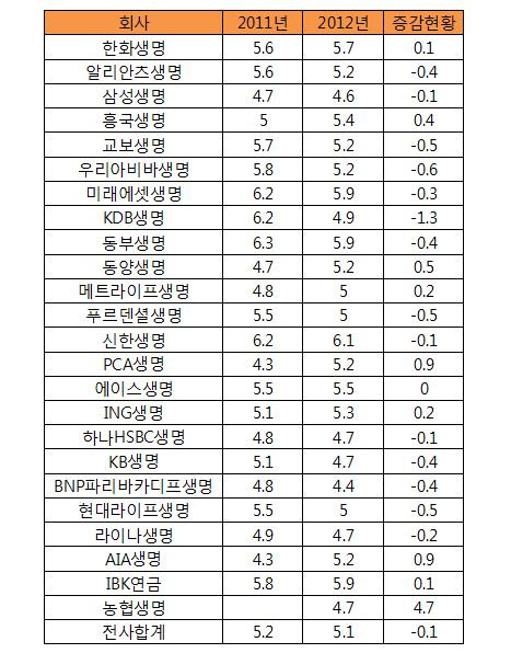 반면 PCA생명과 AIA생명 등 9개 생보사의 이익률은 전년 같은기간 보다 0.9%포인트 올랐다.