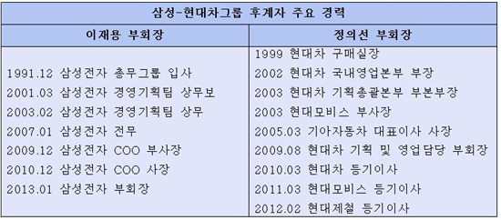 삼성그룹과 현대기아자동차 그룹의 후계자인 이재용 부회장과 정의선 부회장이 전혀 다른 방식으로 경영승계의 과정을 밟고 있어 눈길을 끈다.