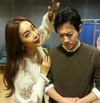공개된 사진에서 백지영은 이루마에게 머리를 빗겨주는 제스처를 취하고 있다.