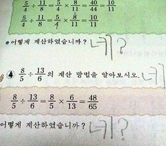 이 초등학생은 문제에 대한 답을 '네?' 혹은 '네'로 답해 웃음을 주고 있다.