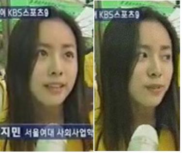 공개된 사진은 한지민이 서울여대 재학 당시 KBS 뉴스 인터뷰를 하는 모습이다.