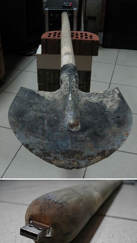 공개된 사진에는 거대한 삽자루의 모습이 담겨 있다. 또한 삽자루 끝에 메모리가 부착돼 있어 이 삽의 용도가 컴퓨터 USB임을 알 수 있었다.