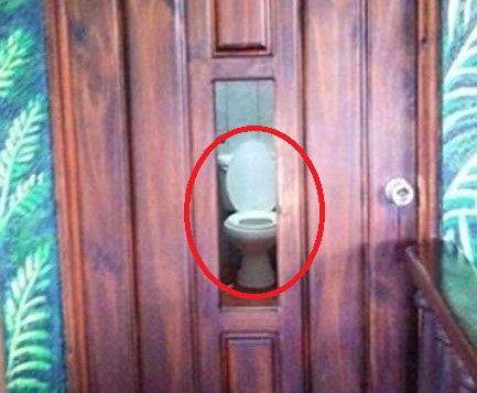사진 속 화장실은 여자만 이용가능하다는 문패가 상단에 붙어있음에도 문 한 가운데가 뻥 뚫려있어 변기가 적나라하게 보인다.