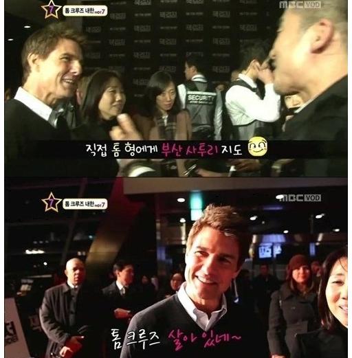 이날 방송에서 리포터는 톰 크루즈에게“부산에 방문했는데 부산 사투리 할 줄 아느냐”고 물었다.