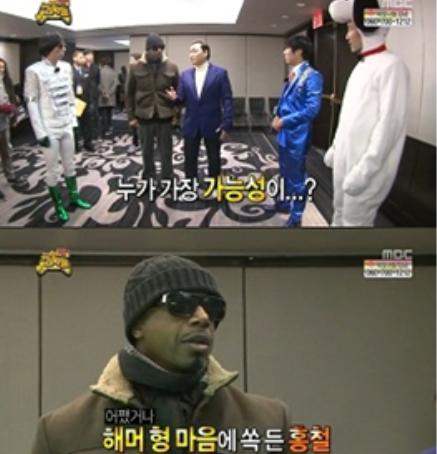 MC해머의 노홍철 지목에 하하는 "홍철이는 미국에서도 먹히는 구나"라며 부러워하는 모습을 보였다. (MC해머 노홍철 /사진-MBC)
