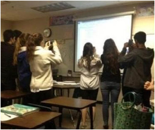 공개된 사진에는 한 대학의 강의실에서 빔프로젝터 화면을 학생들이 스마트폰으로 촬영하고 있는 모습이 담겨 있다.