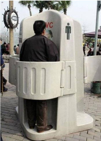 해당사진은 외국의 한 남성전용 이동식 화장실 모습을 담은 것으로 특히 신체의 가운데 부위만 가림막으로 가리고 있어 밀폐된 화장실만 이용했던 사람들에겐 챙피한 화장실이다.