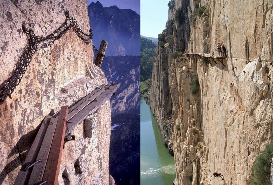 해당사진 속 길은 절벽에 나무판자들로 설치된 것으로 당장에라도 무너질 것 같은 부실한 모습이라 보는 이를 아찔하게 한다.