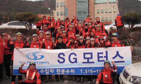 SG모터스는 김성구 대표가 지난 11일 광주광역시 서구 매월동 매월농장 앞 도로변에서 청소년 국토순레단 Y.G.K 대원 380명에게 짜장면과 비빔밥을 제공했다고 14일 밝혔다.