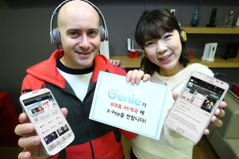 KT(회장 이석채)는 스마트폰 전용 디지털 음악 콘텐츠 앱 ‘(지니)Genie’의 글로벌 서비스인 ‘지니 K-pop’을 미국, 프랑스, 인도 등 전세계 6대륙 45개국에서 출시했다고 15일 밝혔다.