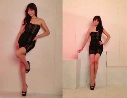 공개된 사진에는 검은색 미니 튜브톱 원피스를 입은 옥주현이 늘씬한 몸매를 자랑하고 있었다.