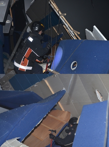 경찰과 소방당국은 건물이 노후해 합판으로 만들어진 천장이 무너져 내린 것으로 보고 정확한 사고 원인을 조사 중이다.(사진-강남경찰서)