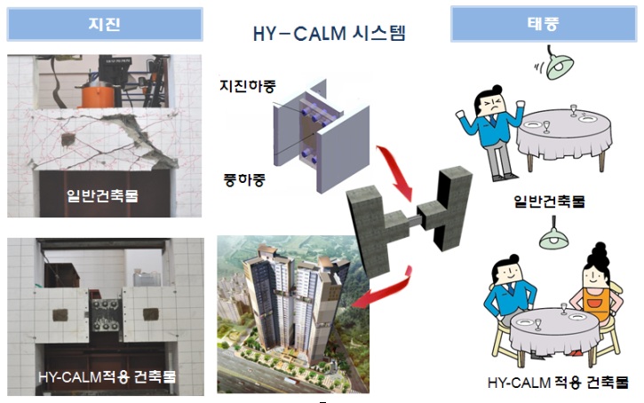 대우건설과 SH공사, DRB동일이 공동 개발한 HY-CALM시스템은 건물 내부에 설치된 댐퍼(진동 흡수장치) 가운데 고감쇠나무를 함께 적용해 지진과 함께 바람에 의한 진동을 동시에 제어 가능한 것이 특징이다.