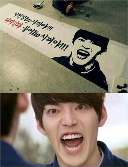 현수막에는 극중 고함을 지르는 김우빈의 표정을 옮겨 놓고 응원 문구 역시 극중 박흥수의 말투를 위트있게 옮겨 눈길을 모았다.