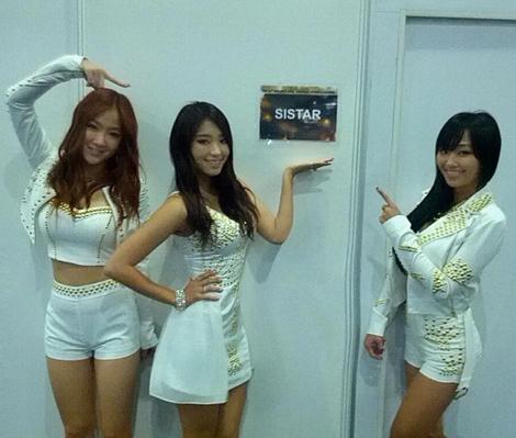 씨스타 무보정 몸매 사진 속 씨스타의 효린, 보라, 소유는 대기실 앞에서 깜찍한 포즈를 취하고 있다.