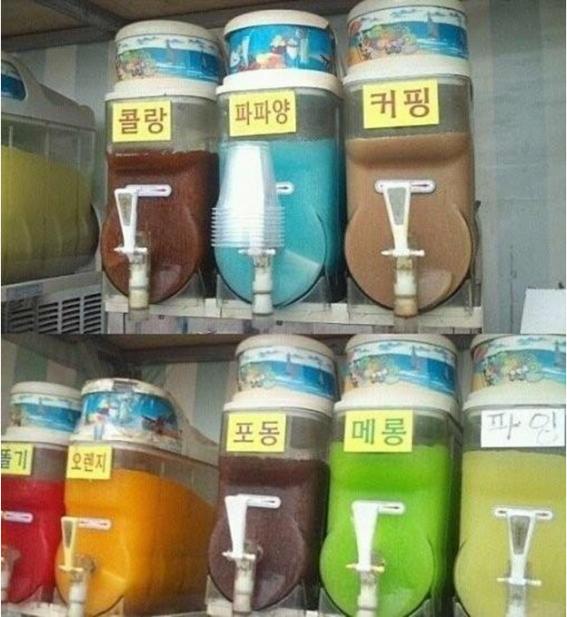 공개된 게시물에는 음료수들이 '콜라'는 '콜랑'으로, '메론'은 '메롱'으로, '포도'는 '포동', '파인'은 '파잉'으로 표기돼 귀여운 모습이다.
