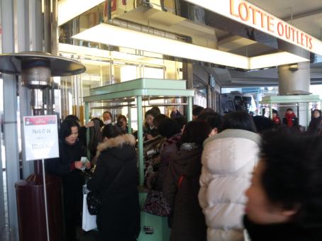 행렬은 아울렛 입구에서부터 꽉 막혀 앞으로 나가지 못했다. 입구에 마련된 부스에서 프랑스 유명브랜드 ‘기라로쉬’ 머플러를 1만원에 두장씩 땡처리 수준으로 팔고 있었기 때문이다.
