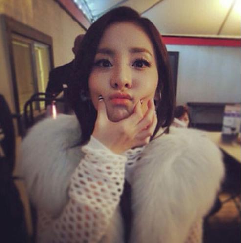 산다라박 셀카 사진에 네티즌들은 "산다라박 귀여운 표정", "나이를 거꾸로 먹나봐요", "귀요미 산다라"등의 반응을 보였다.(사진-YG 엔터테인먼트 미투데이)