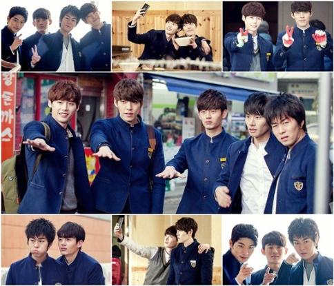 최근 KBS2TV ‘학교 2013 순수오이지’ 사진은 등장인물 이종석, 김우빈, 곽정욱, 이이경, 이지훈은 아이돌 그룹의 인사법처럼 일렬로 손을 내밀고 있는 귀여운 모습이다.