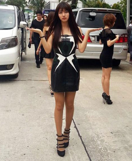 사진 속 수지는 검은색 미니스커트를 입고 뚱한 표정을 짓고 있어 눈길을 끈다. 또한 표정과는 달리 수지의 완벽한 몸매 비율이 시선을 사로잡는다. 공개된 사진은 지난 16일 '제27회 골든디스크' 시상식이 열리던 쿠알라룸푸르에서 포착된 것으로 알려졌다.
