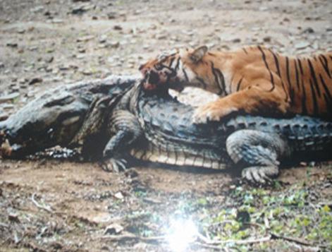 이는 인도 북부에 있는 란탐보르(Ranthambore) 국립공원서 실제로 벌어진 상황으로, 결국 이 악어는 호랑이에 의해 사망했다고 알려졌다.