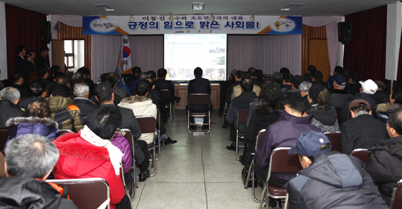 조도면 복지회관에서 열린 군민과의 대화에는 이동진 군수와 실과소장을 비롯한 이장, 새마을 지도자 등 지역주민이 참석했다.