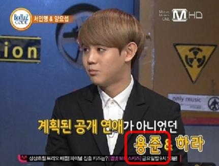 이날 양요섭은 같은 그룹 멤버인 용준형과 걸그룹 카라의 멤버 구하라의 열애에 대한 이야기를 전했다.