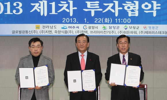 군은 지난 22일 전남도청 서재필실에서 박준영 도지사와 최희우 부군수, 죽향식품(주) 김한주 대표이사가 참석한 가운데 20억원 규모의 투자협약을 체결했다고 23일 밝혔다.