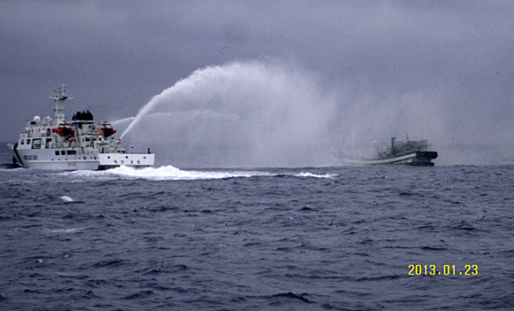 이 선박은 22일 오전 8시 통영 동호항을 출항해 조업 중 기관실에서부터 화재가 발생했다. 선장과 선원들은 화재가 발생하자 구명벌(구명뗏목)로 탈출해 웅진호로 옮겨타 건강에는 이상이 없다.[사진제공 = 여수해양경찰서]