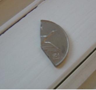 공개된 사진에는 절단된 500원짜리 동전의 모습이 담겨 있다.