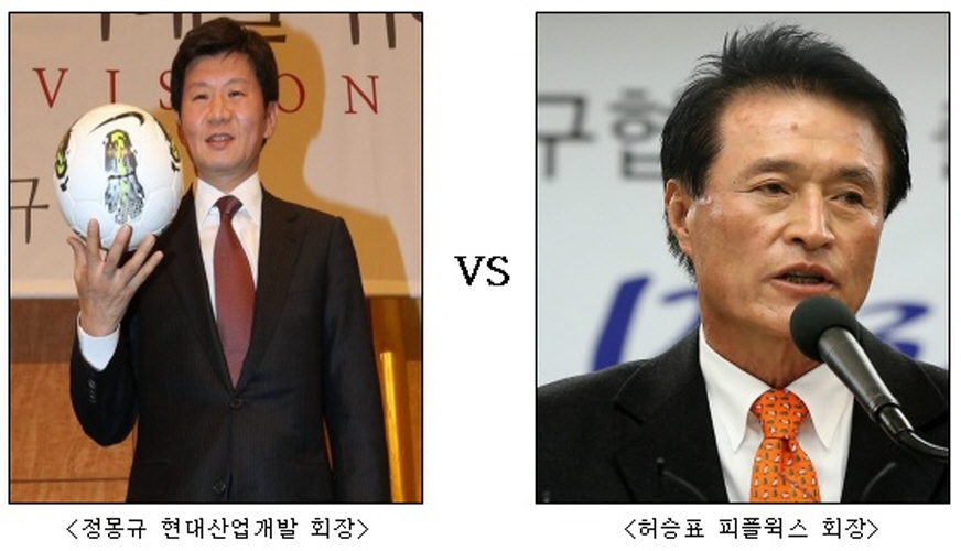 25일 건설업계와 축구계에 따르면 대한축구협회 회장 자리를 놓고 4명의 후보가 출마했으나 사실상 정몽규 현대산업개발 회장과 허승표 피플윅스 회장의 대결로 전개되고 있다.