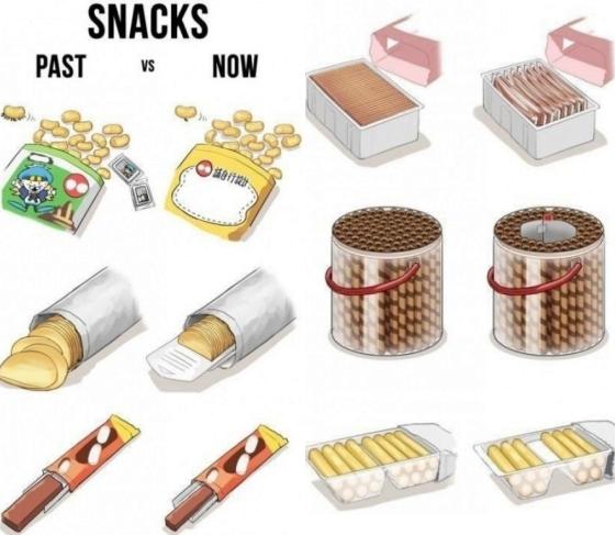 공개된 게시물은 옛날 과자와 요즘 과자의 포상 상태를 비교해 놓은 그림이다.