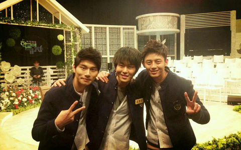 공개된 사진에는 '학교 2013'에 함께 출연 중인 이지훈, 이이경, 곽정욱이 어깨동무를 한 채 브이를 그리며 환한 미소를 짓고 있는 모습이 담겨 있다.