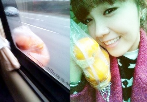정은지는 지난 17일 에이핑크 공식 미투데이에 차창 밖에 귤봉투를 매달은 인증샷을 게재했다.