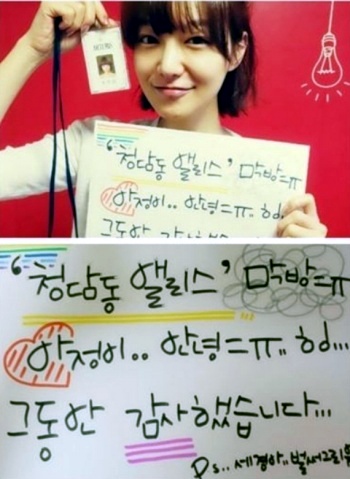 이 문구는 신소율이 직접 손으로 쓴 것으로 귀여운 글씨체가 눈에 띈다.