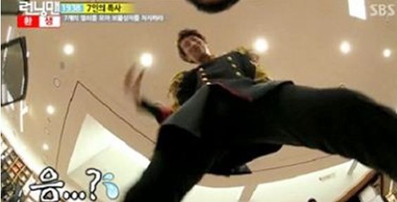 이광수가 런닝맨 촬영 도중 유재석의 카메라 장난에 당황하는 모습을 보였다.