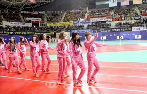 이날 예선전에 참가한 걸그룹 멤버들은 핫핑크 컬러의 트레이닝복을 입고 출전했고 선두에 선 현아는 보는 이들의 시선을 집중시켰다.