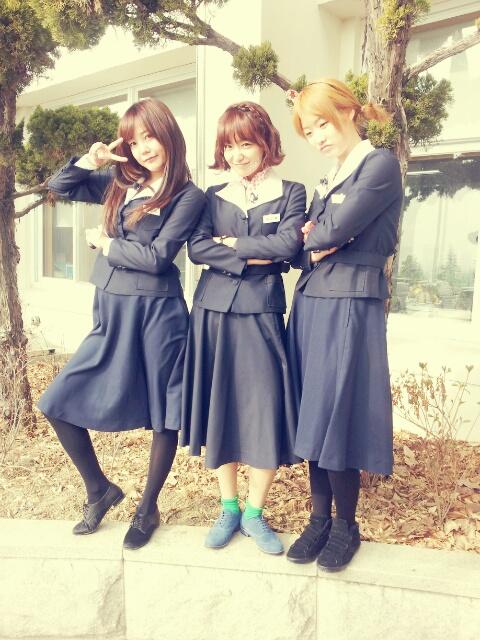 신소율 노는 언니 변신 사진 속 신소율, 고은아 민지는 옛날 교복을 입고 포즈를 취하고 있다. 신소율은 팔장을 끼고 노는 언니 변신 포스를 발산하고 있다.